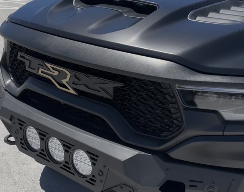 This Ram TRX stands out with a sleek satin black wrap accented by bold gold TRX badging. The finish gives the truck an aggressive, stealth look while the details highlight its raw power. Paired with off-road wheels, rugged tires, and a custom front bumper, this TRX is built to turn heads both on and off the road.